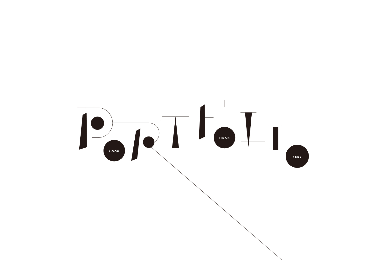 つきからデザインズの制作事例booklet表紙に使用するグラフィックデザインです。「PORTFOLIO」の文字を、ステムとことん太く。セリフとことん細くヘアラインに。と、分けてトーンアンドマナーを設定しデザインしました。PORTFOLIOは、ただ単に見せるだけではなく、「観てもらい」「聴いてもらい」「ココロで感じてもらう」と3拍子の要素をデザインに織り交ぜ、楽しい雰囲気を意識しました。