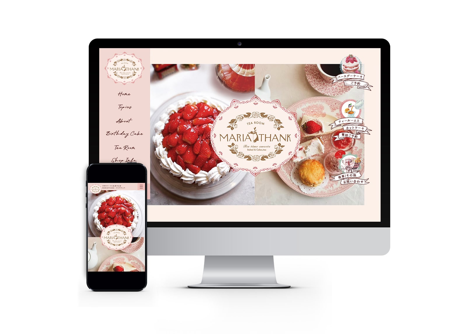 静岡市・小ぐし神社の向かいで、地域の方々に愛され続ける手作りケーキと紅茶のお店、MARIA THANK -マリアサンク- さまのWebサイトをデザインしました。